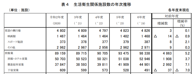 一方で、厚生労働省の統計では、旅館・ホテルの施設数は増加傾向にあります。つまり、新しく参入する事業者がいる一方で、古くからの宿が姿を消すという、入れ替わりが同時に進んでいることがわかります。