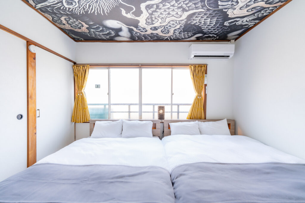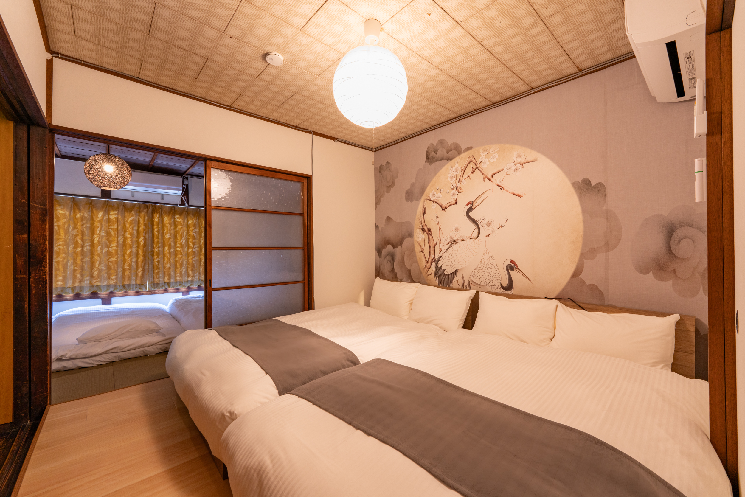 寝室の工夫が好評:和室で布団、洋室でベッドを用意し、宿泊者が好みに応じて選べるスタイルを採用。